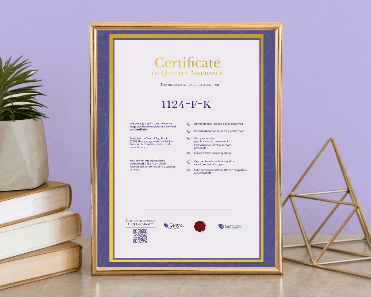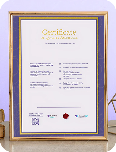 CentraLIVF Certified™ is our official seal of quality assurance, awarded to every egg donation that meets our rigorous medical, ethical, and regulatory standards. This mark ensures transparency, safety, and peace of mind for recipients, fertility clinics, and intended parents.